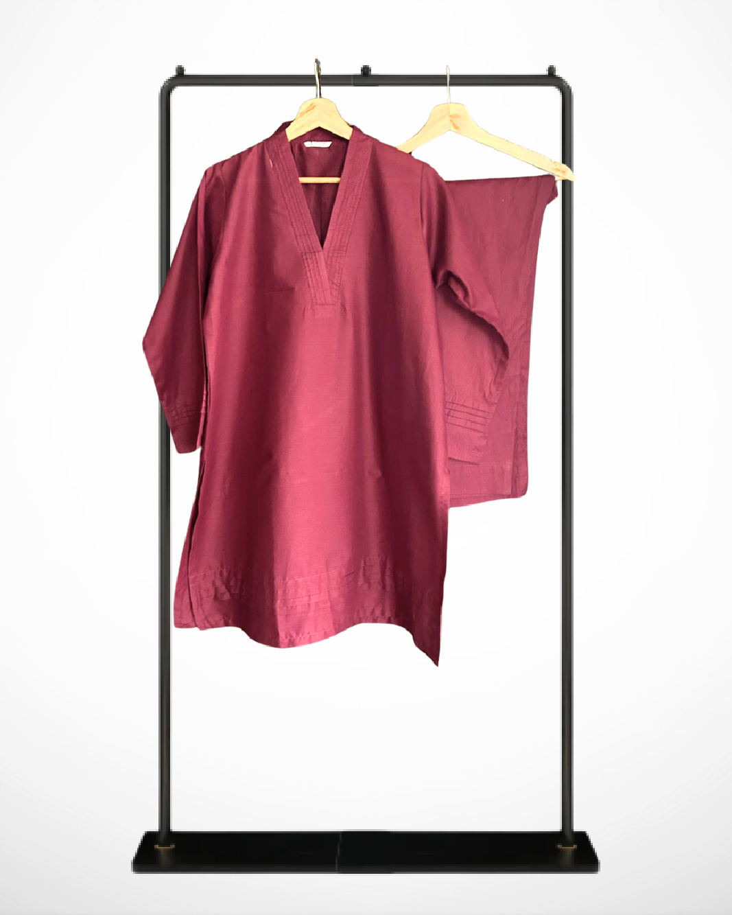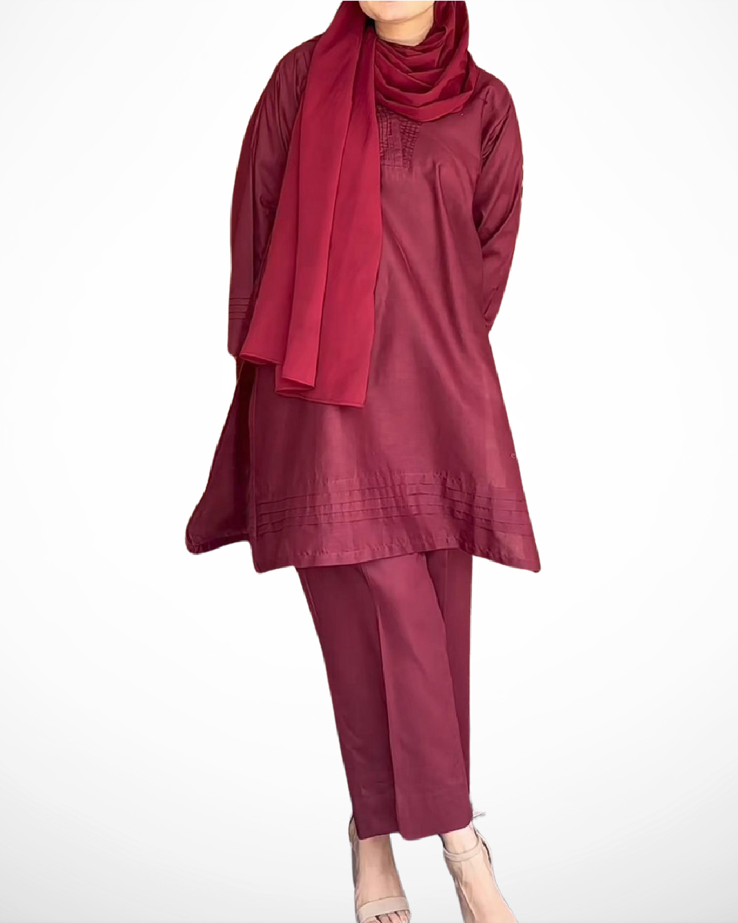 Burgundy 2-piece stitched outfit in Lawn-Cotton, bringing together comfort and class for a graceful everyday look.